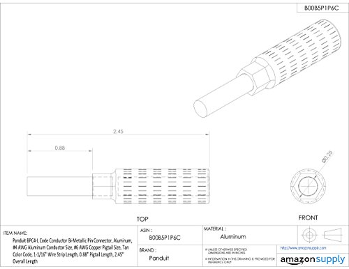 Panduit BPC4-L Code Conductor Bi-Metallic Pin Connector, Aluminum, #4 AWG Aluminum Conductor Size, #6 AWG Copper Pigtail Size, Tan Color Code, 1-1/16" Wire Strip Length, 0.88" Pigtail Length, 2.45" Overall Length [並行輸入品]