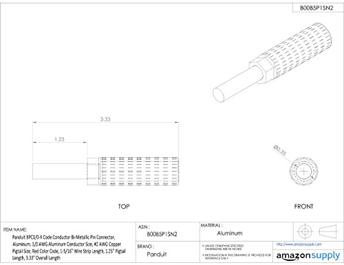 Panduit BPC1/0-X Code Conductor Bi-Metallic Pin Connector, Aluminum, 1/0 AWG Aluminum Conductor Size, #2 AWG Copper Pigtail Size, Red Color Code, 1-5/16" Wire Strip Length, 1.25" Pigtail Length, 3.33" Overall Length [並行輸入品]