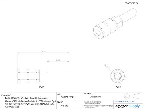 Panduit BPC500-X Code Conductor Bi-Metallic Pin Connector, Aluminum, 500 kcmil Aluminum Conductor Size, 350 kcmil Copper Pigtail Size, Black Color Code, 1-7/16" Wire Strip Length, 1.88" Pigtail Length, 4.35" Overall Length [並行輸入品]