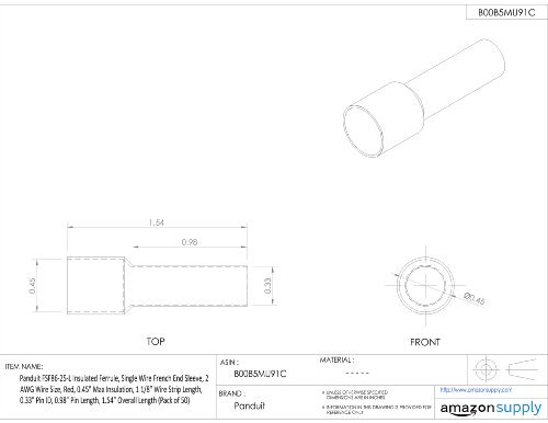Panduit FSF86-25-L Insulated Ferrule, Single Wire French End Sleeve, 2 AWG Wire Size, Red, 0.45" Max Insulation, 1 1/8" Wire Strip Length, 0.33" Pin ID, 0.98" Pin Length, 1.54" Overall Length (Pack of 50) [並行輸入品]