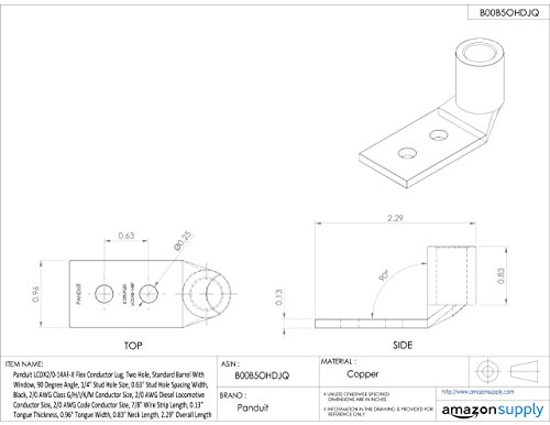 Panduit LCDX2/0-14AF-X Flex Conductor Lug, Two Hole, Standard Barrel With Window, 90 Degree Angle, 1/4" Stud Hole Size, 0.63" Stud Hole Spacing Width, Black, 2/0 AWG Class G/H/I/K/M Conductor Size, 2/0 AWG Diesel Locomotive Conductor Size, 2/0 AWG Code Conductor Size, 7/8" Wire Strip Length, 0.13" Tongue Thickness, 0.96" Tongue Width, 0.83" Neck Length, 2.29" Overall Length [並行輸入品]