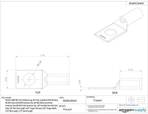 Panduit LCBX8-38-L Flex Conductor Lug, One Hole, Long Barrel With Window, #8 AWG Class G/H/I/K/M Conductor Size, #8 AWG Diesel Locomotive Conductor Size, #8 AWG Code Conductor Size, 3/8" Stud Hole Size, Red Color Code, 3/4" Wire Strip Length, 0.05" Tongue Thickness, 0.60" Tongue Width, 0.70" Neck Length, 1.70" Overall Length [並行輸入品]