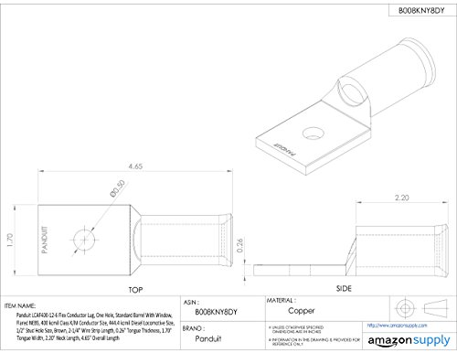 Panduit LCAF400-12-6 Flex Conductor Lug, One Hole, Standard Barrel With Window, Flared NEBS, 400 kcmil Class K/M Conductor Size, 444.4 kcmil Diesel Locomotive Size, 1/2" Stud Hole Size, Brown, 2-1/4" Wire Strip Length, 0.26" Tongue Thickness, 1.70" Tongue Width, 2.20" Neck Length, 4.65" Overall Length [並行輸入品]