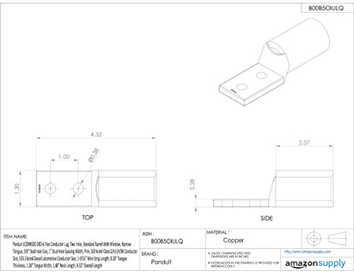 Panduit LCDXN500-38D-6 Flex Conductor Lug, Two Hole, Standard Barrel With Window, Narrow Tongue, 3/8" Stud Hole Size, 1" Stud Hole Spacing Width, Pink, 500 kcmil Class G/H/I/K/M Conductor Size, 535.3 kcmil Diesel Locomotive Conductor Size, 1-9/16" Wire Strip Length, 0.28" Tongue Thickness, 1.30" Tongue Width, 1.48" Neck Length, 4.32" Overall Length [並行輸入品]