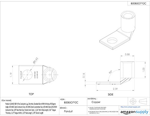 Panduit LCAX4/0-58F-X Flex Conductor Lug, One Hole, Standard Barrel With Window, 90 Degree Angle, 4/0 AWG Code Conductor Size, 4/0 AWG Diesel Locomotive Size, 4/0 AWG Class G/H/I/K/M Conductor Size, 5/8" Stud Hole Size, Purple Color Code, 1-1/16" Wire Strip Length, 0.16" Tongue Thickness, 1.19" Tongue Width, 1.03" Neck Length, 2.39" Overall Length [並行輸入品]