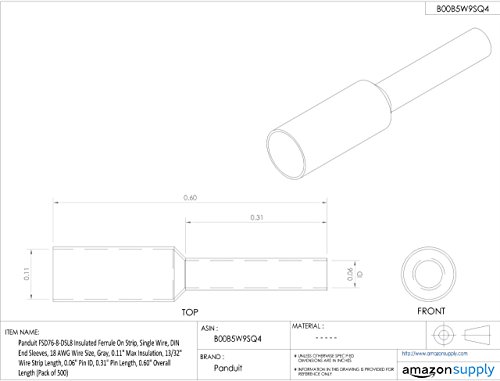 Panduit FSD76-8-DSL8 Insulated Ferrule On Strip, Single Wire, DIN End Sleeves, 18 AWG Wire Size, Gray, 0.11" Max Insulation, 13/32" Wire Strip Length, 0.06" Pin ID, 0.31" Pin Length, 0.60" Overall Length (Pack of 500) [並行輸入品]
