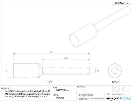 Panduit FSD76-10-D Insulated Ferrule, Single Wire DIN End Sleeve, 20 AWG Wire Size, Gray, 0.11" Max Insulation, 17/32" Wire Strip Length, 0.05" Pin ID, 0.39" Pin Length, 0.63" Overall Length (Pack of 500) [並行輸入品]