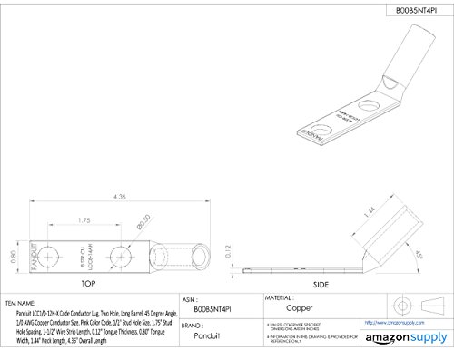 Panduit LCC1/0-12H-X Code Conductor Lug, Two Hole, Long Barrel, 45 Degree Angle, 1/0 AWG Copper Conductor Size, Pink Color Code, 1/2" Stud Hole Size, 1.75" Stud Hole Spacing, 1-1/2" Wire Strip Length, 0.12" Tongue Thickness, 0.80" Tongue Width, 1.44" Neck Length, 4.36" Overall Length [並行輸入品]