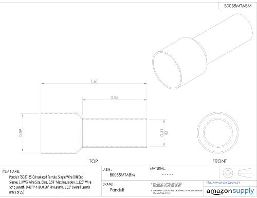 Panduit FSD87-25-Q Insulated Ferrule, Single Wire DIN End Sleeve, 1 AWG Wire Size, Blue, 0.59" Max Insulation, 1.125" Wire Strip Length, 0.41" Pin ID, 0.98" Pin Length, 1.61" Overall Length (Pack of 25) [並行輸入品]