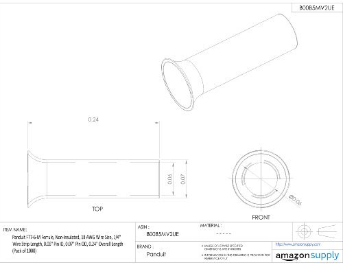 Panduit F77-6-M Ferrule, Non-Insulated, 18 AWG Wire Size, 1/4" Wire Strip Length, 0.06" Pin ID, 0.07" Pin OD, 0.24" Overall Length (Pack of 1000) [並行輸入品]