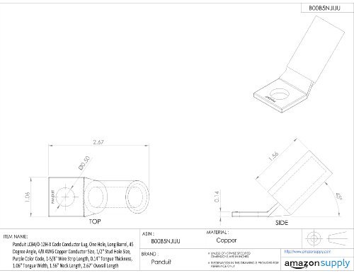 Panduit LCB4/0-12H-X Code Conductor Lug, One Hole, Long Barrel, 45 Degree Angle, 4/0 AWG Copper Conductor Size, 1/2" Stud Hole Size, Purple Color Code, 1-5/8" Wire Strip Length, 0.14" Tongue Thickness, 1.06" Tongue Width, 1.56" Neck Length, 2.67" Overall Length [並行輸入品]