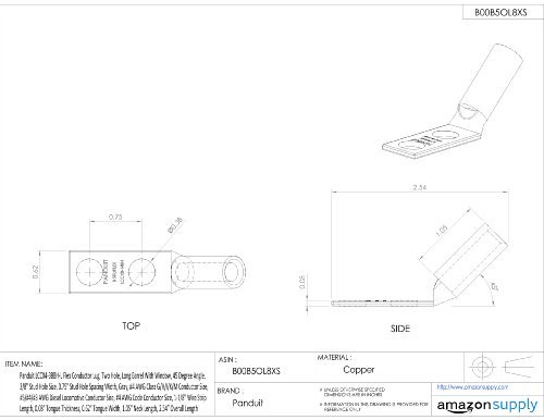 Panduit LCCX4-38BH-L Flex Conductor Lug, Two Hole, Long Barrel With Window, 45 Degree Angle, 3/8" Stud Hole Size, 0.75" Stud Hole Spacing Width, Gray, #4 AWG Class G/H/I/K/M Conductor Size, #5/#4/#3 AWG Diesel Locomotive Conductor Size, #4 AWG Code Conductor Size, 1-1/8" Wire Strip Length, 0.08" Tongue Thickness, 0.62" Tongue Width, 1.05" Neck Length, 2.54" Overall Length [並行輸入品]