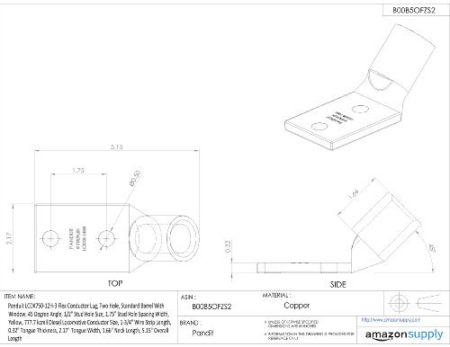 Panduit LCDX750-12H-3 Flex Conductor Lug, Two Hole, Standard Barrel With Window, 45 Degree Angle, 1/2" Stud Hole Size, 1.75" Stud Hole Spacing Width, Yellow, 777.7 kcmil Diesel Locomotive Conductor Size, 1-3/4" Wire Strip Length, 0.32" Tongue Thickness, 2.17" Tongue Width, 1.66" Neck Length, 5.15" Overall Length [並行輸入品]
