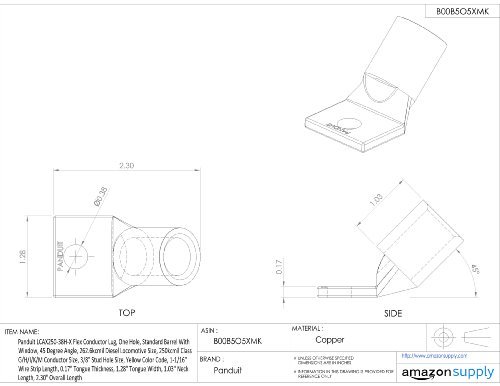 Panduit LCAX250-38H-X Flex Conductor Lug, One Hole, Standard Barrel With Window, 45 Degree Angle, 262.6kcmil Diesel Locomotive Size, 250kcmil Class G/H/I/K/M Conductor Size, 3/8" Stud Hole Size, Yellow Color Code, 1-1/16" Wire Strip Length, 0.17" Tongue Thickness, 1.28" Tongue Width, 1.03" Neck Length, 2.30" Overall Length [並行輸入品]