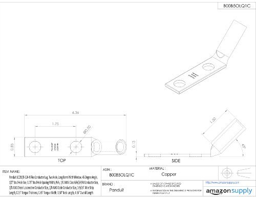 Panduit LCCX1/0-12H-X Flex Conductor Lug, Two Hole, Long Barrel With Window, 45 Degree Angle, 1/2" Stud Hole Size, 1.75" Stud Hole Spacing Width, Pink, 1/0 AWG Class G/H/I/K/M Conductor Size, 1/0 AWG Diesel Locomotive Conductor Size, 1/0 AWG Code Conductor Size, 1-9/16" Wire Strip Length, 0.13" Tongue Thickness, 0.85" Tongue Width, 1.50" Neck Length, 4.36" Overall Length [並行輸入品]