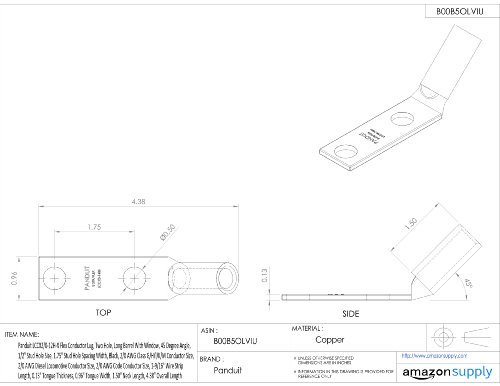 Panduit LCCX2/0-12H-X Flex Conductor Lug, Two Hole, Long Barrel With Window, 45 Degree Angle, 1/2" Stud Hole Size, 1.75" Stud Hole Spacing Width, Black, 2/0 AWG Class G/H/I/K/M Conductor Size, 2/0 AWG Diesel Locomotive Conductor Size, 2/0 AWG Code Conductor Size, 1-9/16" Wire Strip Length, 0.13" Tongue Thickness, 0.96" Tongue Width, 1.50" Neck Length, 4.38" Overall Length [並行輸入品]