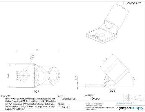 Panduit LCAX250-12H-X Flex Conductor Lug, One Hole, Standard Barrel With Window, 45 Degree Angle, 262.6kcmil Diesel Locomotive Size, 250kcmil Class G/H/I/K/M Conductor Size, 1/2" Stud Hole Size, Yellow Color Code, 1-1/16" Wire Strip Length, 0.17" Tongue Thickness, 1.28" Tongue Width, 1.03" Neck Length, 2.41" Overall Length [並行輸入品]