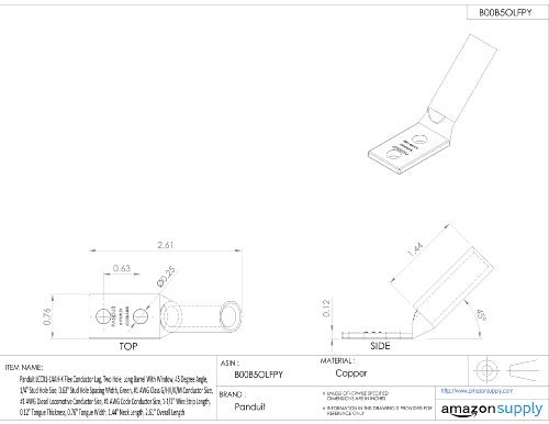 Panduit LCCX1-14AH-X Flex Conductor Lug, Two Hole, Long Barrel With Window, 45 Degree Angle, 1/4" Stud Hole Size, 0.63" Stud Hole Spacing Width, Green, #1 AWG Class G/H/I/K/M Conductor Size, #1 AWG Diesel Locomotive Conductor Size, #1 AWG Code Conductor Size, 1-1/2" Wire Strip Length, 0.12" Tongue Thickness, 0.76" Tongue Width, 1.44" Neck Length, 2.61" Overall Length [並行輸入品]