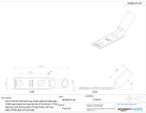 Panduit LCC3/0-12H-X Code Conductor Lug, Two Hole, Long Barrel, 45 Degree Angle, 3/0 AWG Copper Conductor Size, Orange Color Code, 1/2" Stud Hole Size, 1.75" Stud Hole Spacing, 1-9/16" Wire Strip Length, 0.13" Tongue Thickness, 0.96" Tongue Width, 1.50" Neck Length, 4.50" Overall Length [並行輸入品]