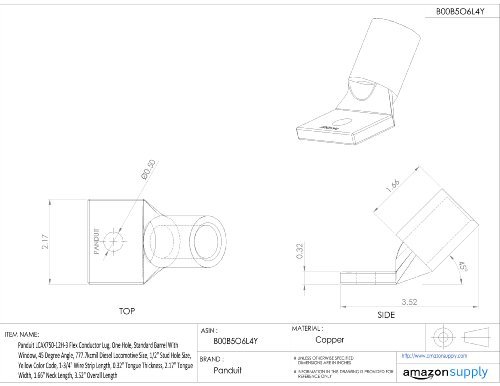 Panduit LCAX750-12H-3 Flex Conductor Lug, One Hole, Standard Barrel With Window, 45 Degree Angle, 777.7kcmil Diesel Locomotive Size, 1/2" Stud Hole Size, Yellow Color Code, 1-3/4" Wire Strip Length, 0.32" Tongue Thickness, 2.17" Tongue Width, 1.66" Neck Length, 3.52" Overall Length [並行輸入品]