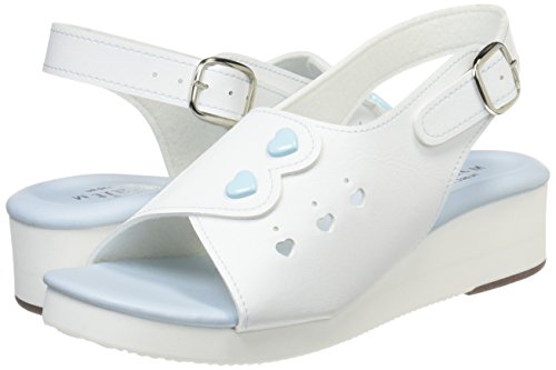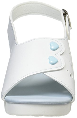ソールの内側傾斜でO脚対策できるナースサンダル。歩きながら自然に体重が内側にかかるハイクオリティソールを使用。美脚対策と日常実務クオリティを兼ね備えたナースサンダル 【材質】 ●アッパー:PVC ●中敷き:ビニール ●底:EVA ●ヒール高:約45㎜ ●片足重量:約135g/Mサイズ ●ワイズ:3E ●生産国:日本 ●カラー:ブルー ●サイズ:S~LL ※女性用サイズ