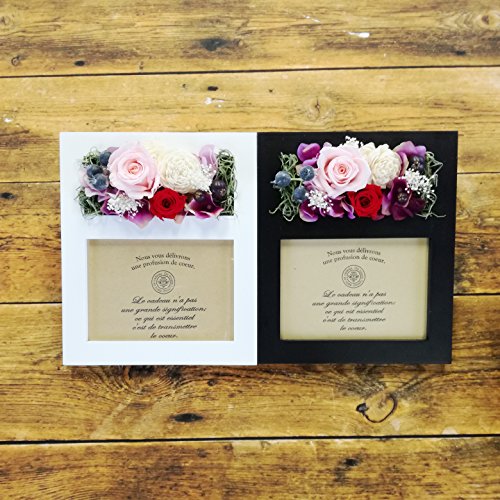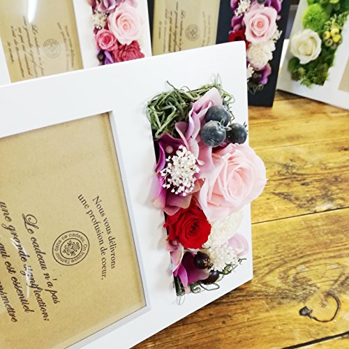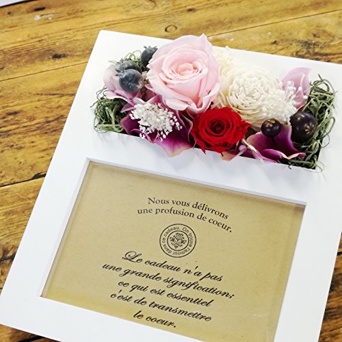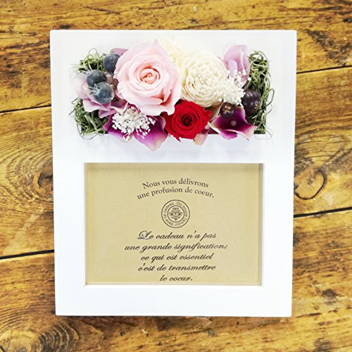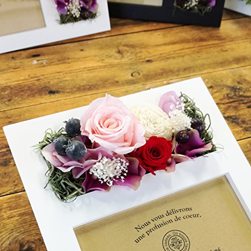 プリザーブドフラワー フォトフレーム Parfait カンパーニュ ピンクレッド L版 専用ギフトボックス入