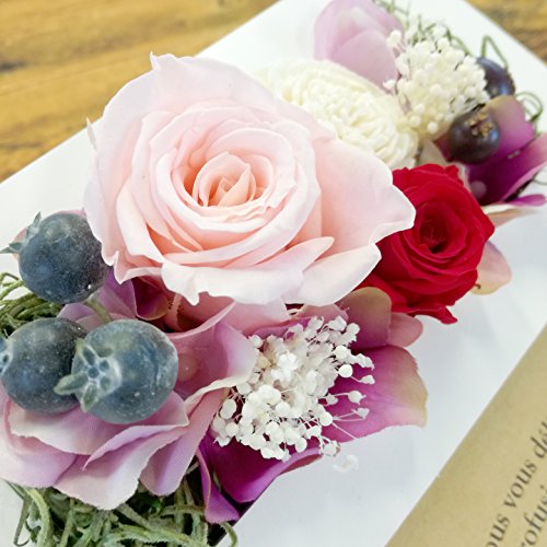 - 素材・材質:プリザーブドフラワー、ドライフラワー、ソラフラワー、造花、天然木(フレーム)、紙(ボックス)、その他
