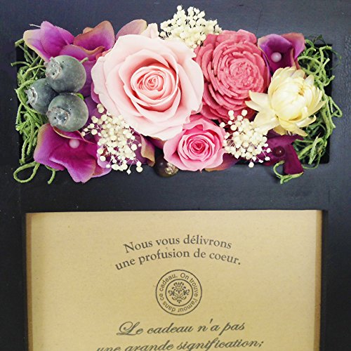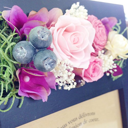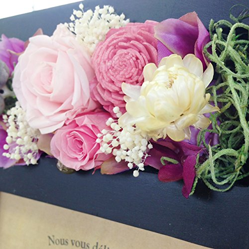 - 素材・材質:写真立て/天然木、個装箱/クラフト紙、花材/プリザーブド花材、造花他