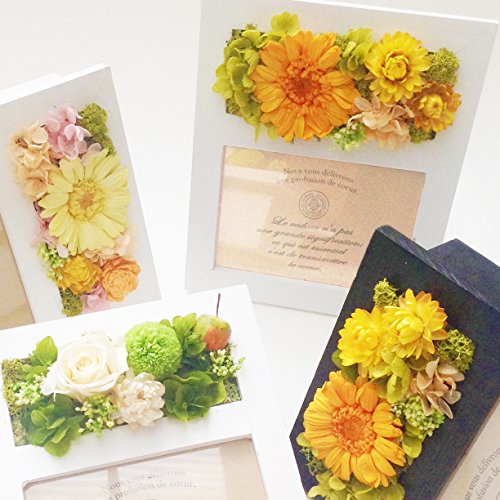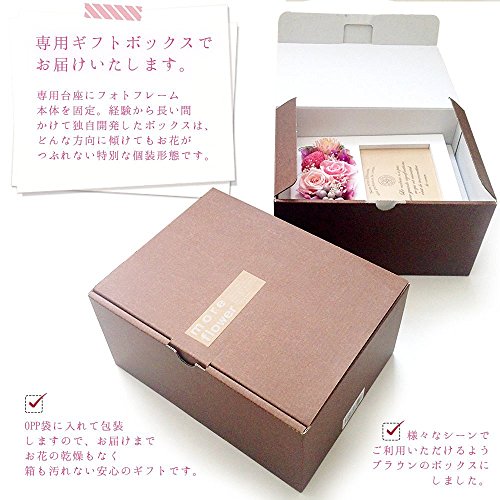 - 素材・材質:写真立て/天然木、個装箱/クラフト紙、花材/プリザーブド花材、造花他