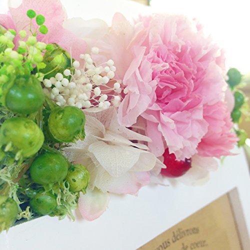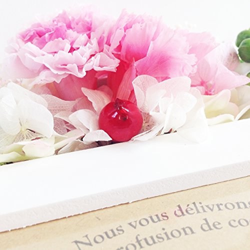- 素材・材質:写真立て/天然木、個装箱/クラフト紙、花材/プリザーブド花材、造花他