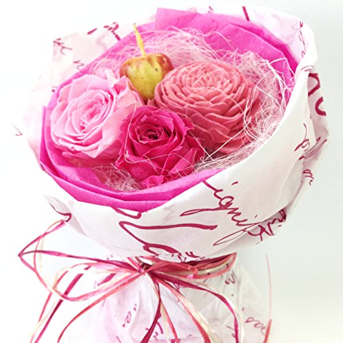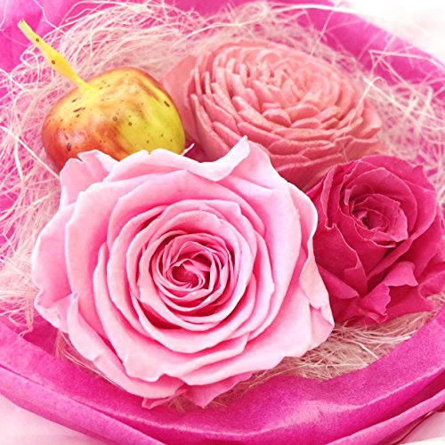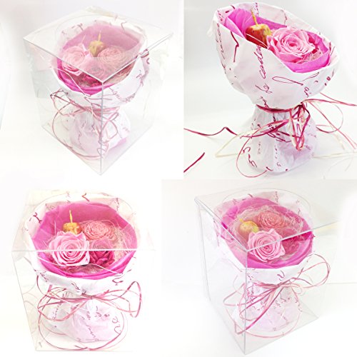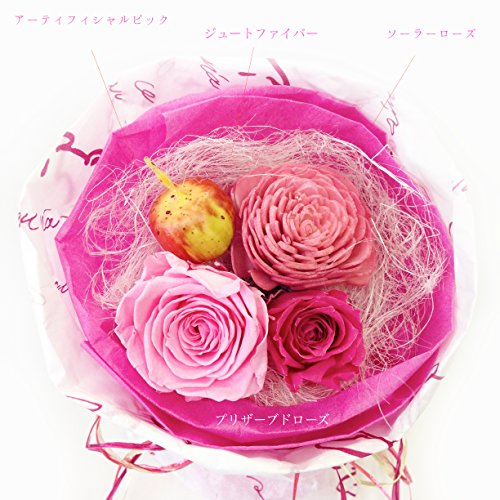 - 素材・材質:本体/プリザーブドローズ、ソーラーフラワー、アーティフィシャルピック、ジュートファイバー、紙、ケース/ポリ塩化ビニール、リボン/レーヨン
