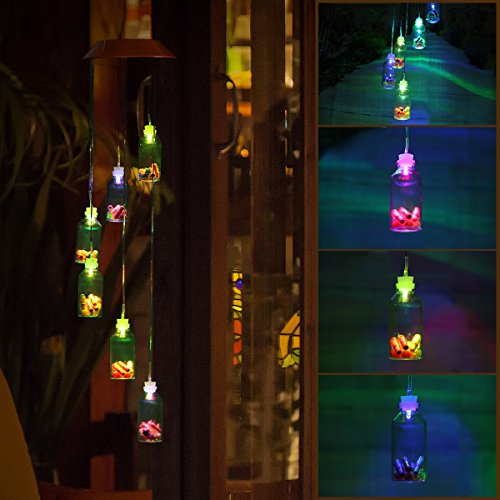 風鈴ライト Pathonor イルミネーションライト ソーラーパネル搭載 LEDライト 六つ願望ボトル 庭園灯 透明なガラス 家/玄関前 /喫茶店/パーティー/夜の庭園を飾り 防水 色が自動変更