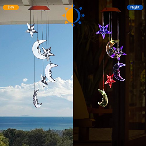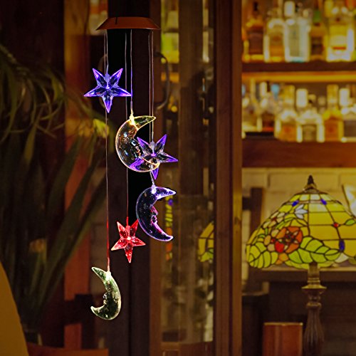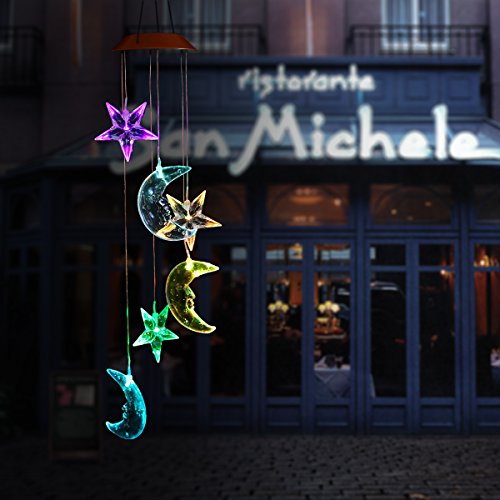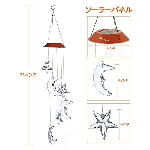 風鈴ライト Pathonor イルミネーションライト ソーラーパネル搭載 LEDライト 庭園灯 三つの星と月 家/玄関前 /喫茶店/パーティー/夜の庭園を飾り 防水 色が自動変更