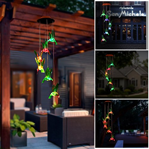 長い寿命のための大容量バッテリーとソーラーハチドリのモバイル風チャイム。