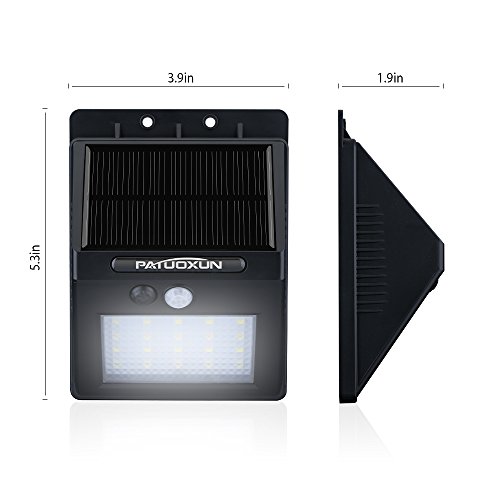 Patuoxun 20LED ソーラーライト ワイヤレスライト 人感センサー搭載 屋外照明/軒先/壁掛け/庭先/玄関周りなど対応 夜間自動点灯