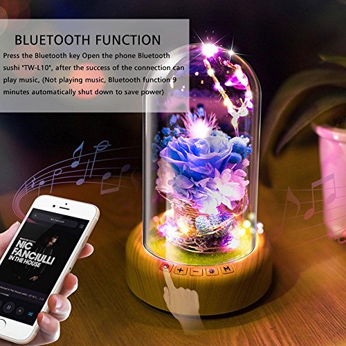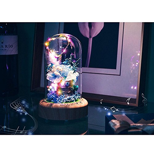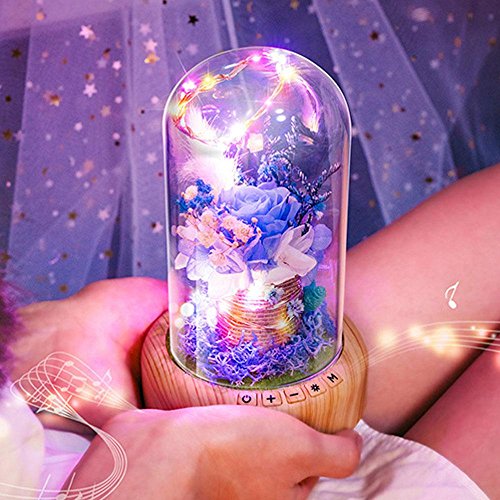 Eternal Flower Forバレンタインの日、micro-landscape Wishingボトルテーブルランプ、Pawaca充電式Bluetoothスピーカーナイトライト、LED雰囲気ランプ、完璧の女性誕生日パーティーFestivaly One Size ブルー 7025779207828