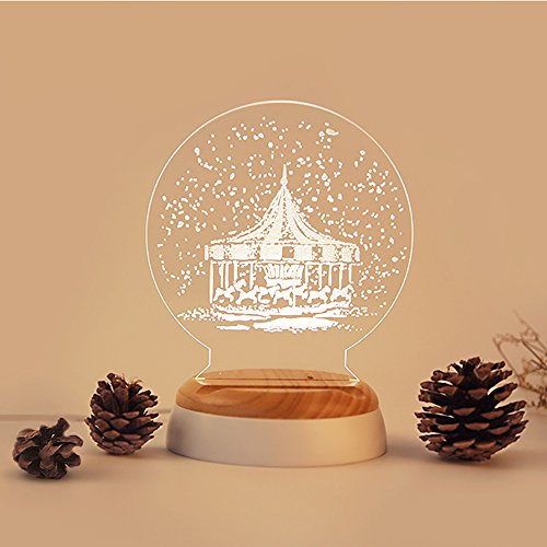 Pawaca 3D ナイトライト 4in1多機能 目に優しい LED小夜灯 アロマ機能 充電スタンド 夜間照明 空気浄化 お子供やお年寄りに最適 回転木马