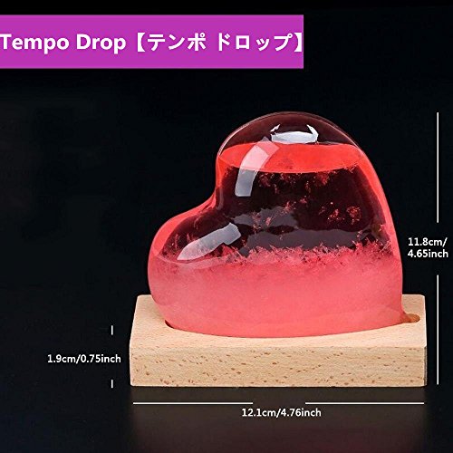 Pawaca ストームグラス テンポドロップ ガラス天気予報ボトル ストーム瓶 Tempo Drop オブジェ 気象予報機 結晶観察器 ラブ型 ハート状 木座有り インテリア バレンタインデーのプレゼント レッド