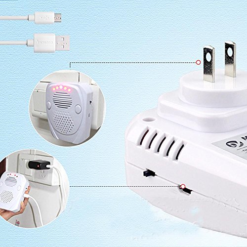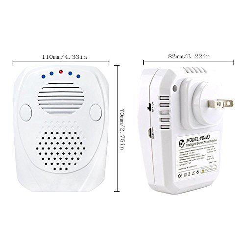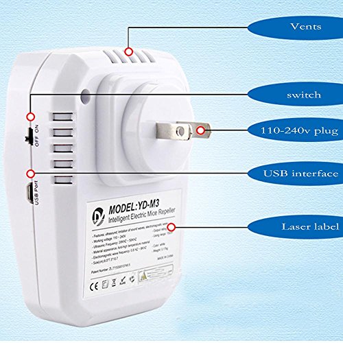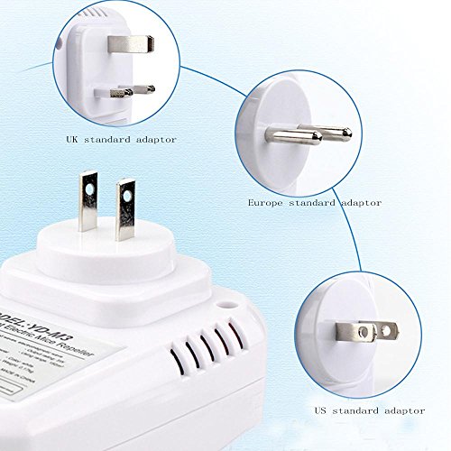 - 【置き場】地面から20-30cmの壁でインストール して、その周りの1メートル以内に大きい障害物(冷蔵庫、ソファーなど)は禁止です。注意:超音波害虫駆除機は地面に垂直にしてください。