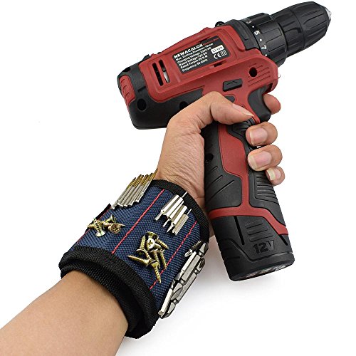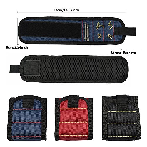 Pawaca 磁気リストバンド アームバンド 超強力磁石 ネジ ネイル ライトツール 小部品紛失防止 修理 DIY用 3本超強力マグネット ブラック
