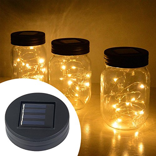 Pawaca イルミネーションライト ストリングスライト ガラスソーラーライト 置物ライト Mason Jar メイソンジャー 10 LED ライト ソーラー充電可能 ライブ応援グッズ 装飾用 インテリア クリスマス パーティー ウォームホワイト
