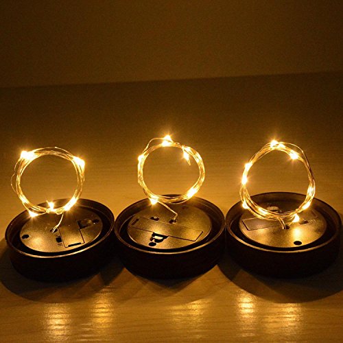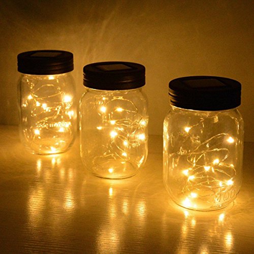 Pawaca イルミネーションライト ストリングスライト ガラスソーラーライト Mason Jar メイソンジャー 10 LED ライト ソーラー充電可能 ライブ応援グッズ 装飾用 インテリア クリスマス パーティー 3点セット ウォームホワイト