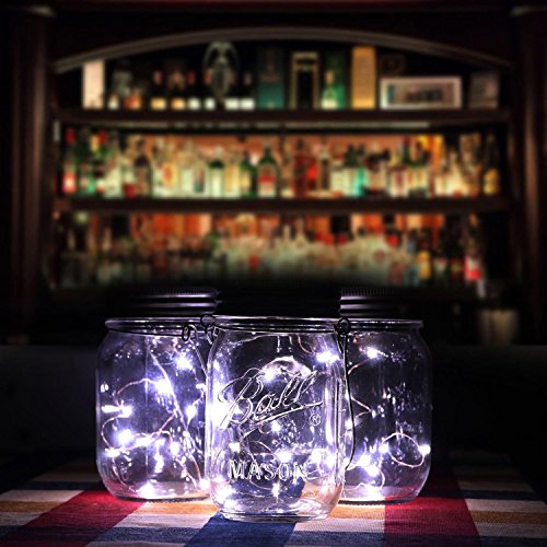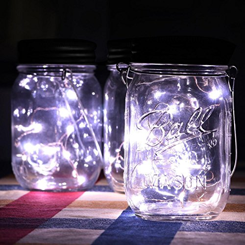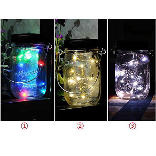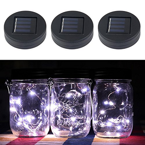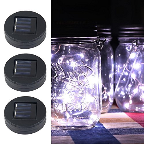 Pawaca イルミネーションライト ストリングスライト ガラスソーラーライト Mason Jar メイソンジャー 10 LED ライト ソーラー充電可能 ライブ応援グッズ 装飾用 インテリア クリスマス パーティー 3点セット ホワイト