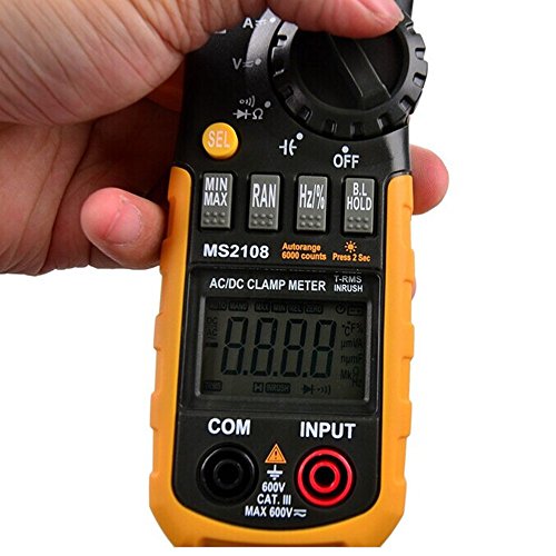 デジタルマルチメータ, Protmex MS2108 デジタルクランプメーター、 6600カウント 自動およびマニュアルレンジ AC / DC 真のRMS マルチメーター AC DC 電圧 現在 抵抗 キャパシタンス 周波数 デューティサイクルテスタ