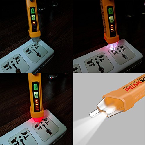Protmex PM8908C 非接触式 検電器 電圧検出器 ペン型 12~1000V AC電圧 音光式 LEDライト付き 携帯便利 非接触電圧測定 電圧テスター