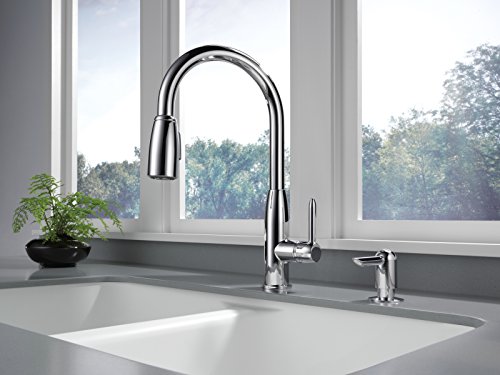 Peerlessシングルハンドル現代キッチンPull Down蛇口withソープディスペンサー P188103LF-SD 1