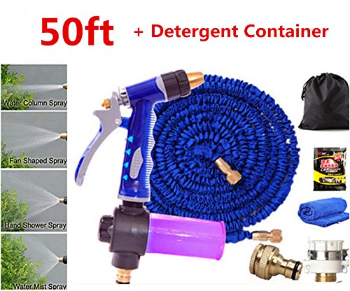 拡張可能なガーデンホース(洗剤用容器付き)ガーデン、灌漑、洗車、窓、街路清掃用の調整可能なスプレーモード,50Ft