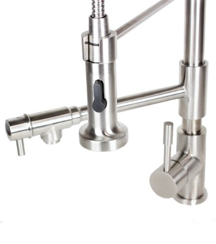 ヨーロッパのデザイン多機能キッチンミキサー蛇口つや消しステンレススチール仕上げ – 変色や腐食防止のセラミックディスク弁永久的にスムーズなハンドル操作と使用パフォーマンスを維持することができます。特大ボタンスプレーがワンタッチ。dual-functionプルアウトスプレーヘッドを持つAerated流れまたは強力なスプレーです。標準の米国配管接続 – すべてのインストールのハードウェアおよびウォーターホース含まあらゆるキッチンシンクに合います。インストールされ、デッキプレートの単一の穴のインストールではありません。最大2.2 GPMフローレート認定された、UPC」、「フタロシアニンCSA , IAPMO、ANSI SCC、NSF。鉛フリーAB 1953準拠です。100 %圧力システムテストされています。バー、キッチンシンク、すすぎに最適で、洗濯を同時に27 – 1 / 2 " (全高) 10 – 1 / 2 " (プルダウンスプレー注ぎ口長さ) 8 – 3 / 4インチの(スイベル注ぎ口長さ) 8 – 3 / 4 "プルダウンスプレー吐水口高さ6 " (自在スパウトの高さ)