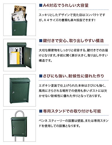 - ★錆にも強い、耐候性に優れた作り エポキシ塗装で仕上げられた本体はさびにも強く、風雨にさらされる場所での使用も多いポストには欠かせない耐候性に優れた作りとなっております。