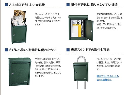 - ★錆にも強い、耐候性に優れた作り エポキシ塗装で仕上げられた本体はさびにも強く、風雨にさらされる場所での使用も多いポストには欠かせない耐候性に優れた作りとなっております。